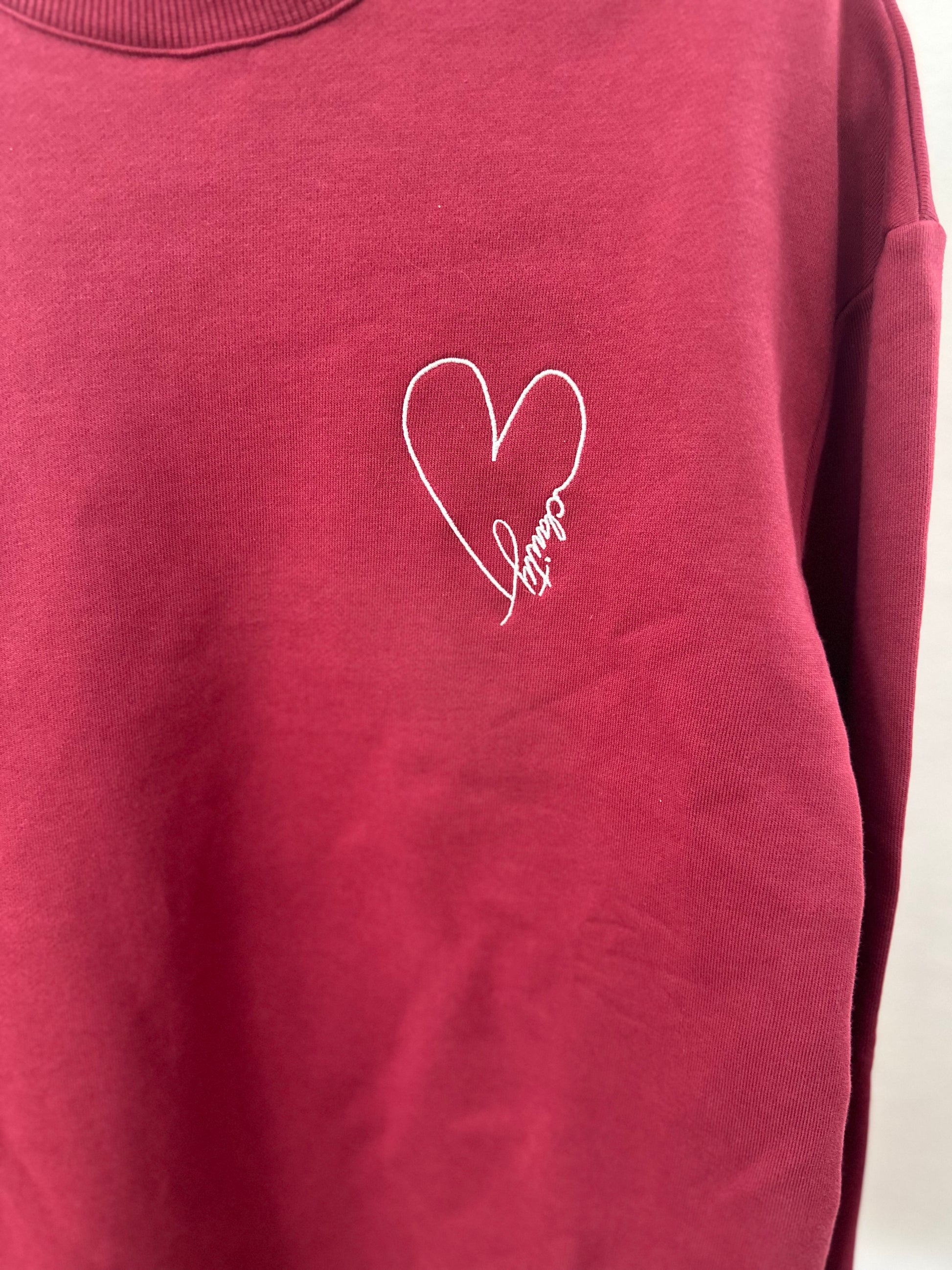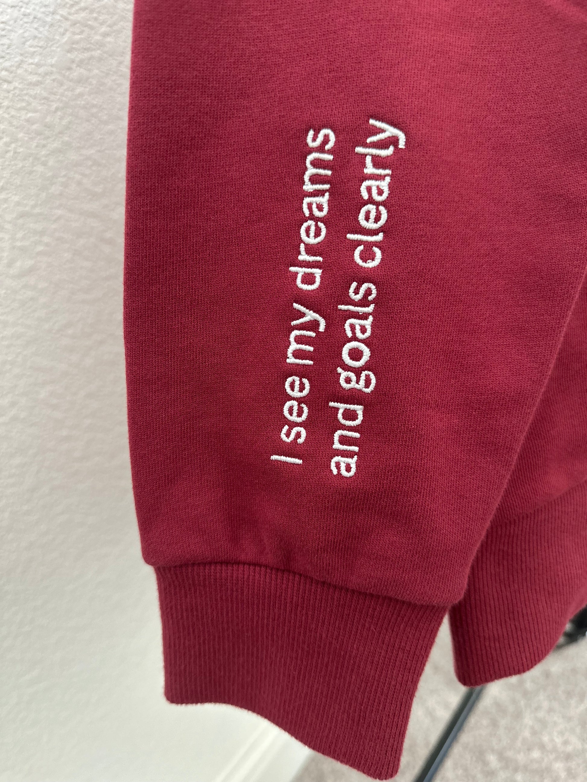 Embroidered Clarity Heart long sleeve crewneck with embroidered Clarity Affirmation on right sleeve. Hypoallergenic 100% Cotton.